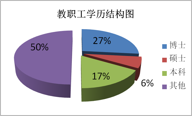 中心现有教职工30人,其中,理论课教师(兼职)8人,实训指导教师17人,管理人员5人。教授2人,高级工程师1人,讲师8人,工程师1人,助理工程师2人,高级技工6人;博士8人,硕士2人,本科5人,专科7人。